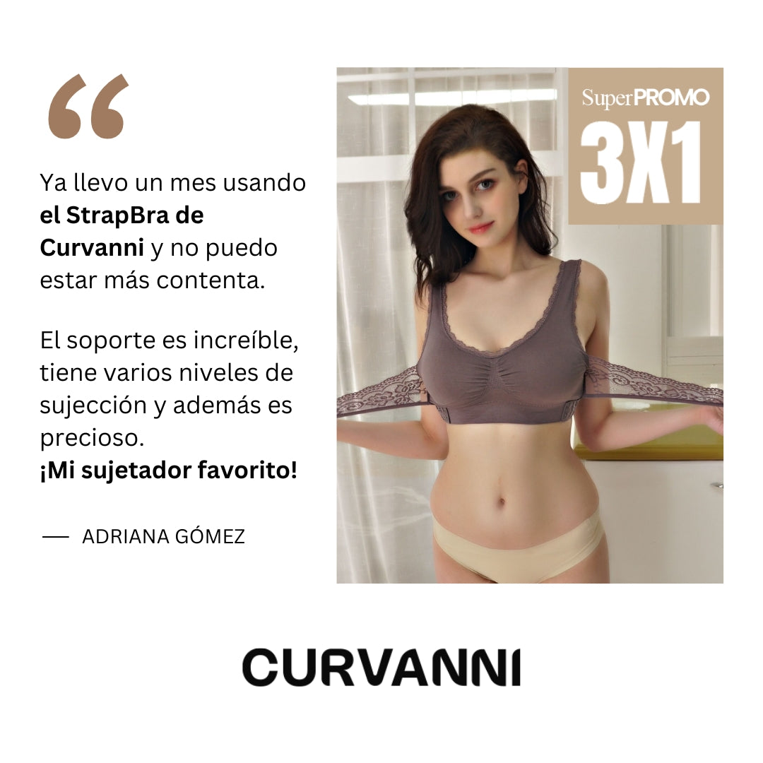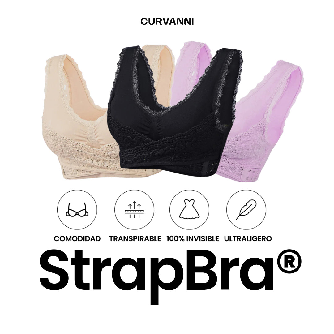 Strapbra® no es solo un sujetador… ¡es la solución definitiva para realzar, esculpir y aliviar! Su innovador diseño de empuje cruzado ofrece un soporte impecable sin necesidad de incómodos aros o costuras. Pero eso no es todo: reduce la presión en la espalda, estiliza la figura y realza el busto como ningún otro!